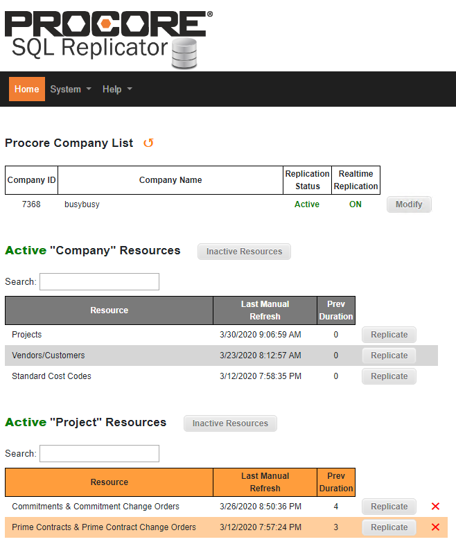 through the native Procore interface, the changes are replicated to a SQL Server database within 60 seconds or less.