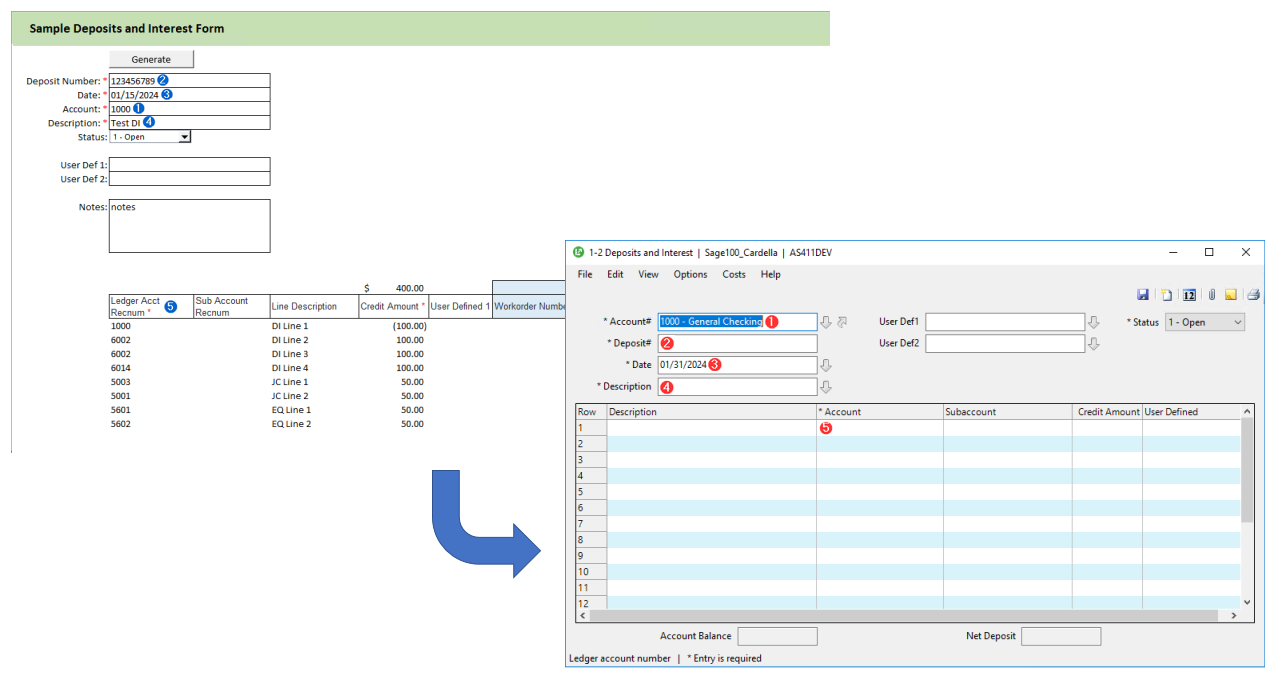 Are you tired of manually keying in Deposits and Interest one by one into Sage 100 Contractor? Would you rather download your deposits and interest, fill in the blanks in Excel and import the details directly into Sage 100 Contractor? The following integration template allows you to do just that. It mimics every feature and function of the 1-2 Deposits and Interest data entry form.