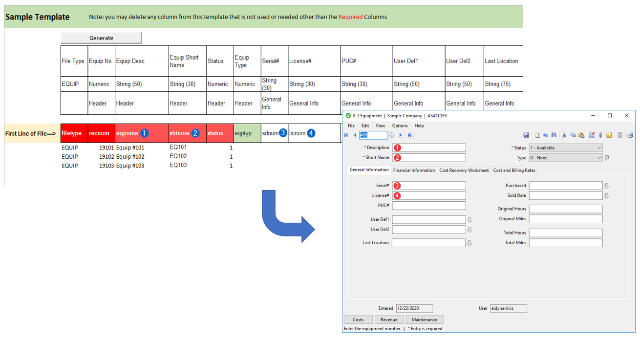 Are you tired of manually keying in Equipment one by one into Sage 100 Contractor? Would you rather download your equipment, fill in the blanks in Excel and import the details directly into Sage 100 Contractor? The following integration template allows you to do just that. It mimics every feature and function of the 8-3 Equipment data entry form.