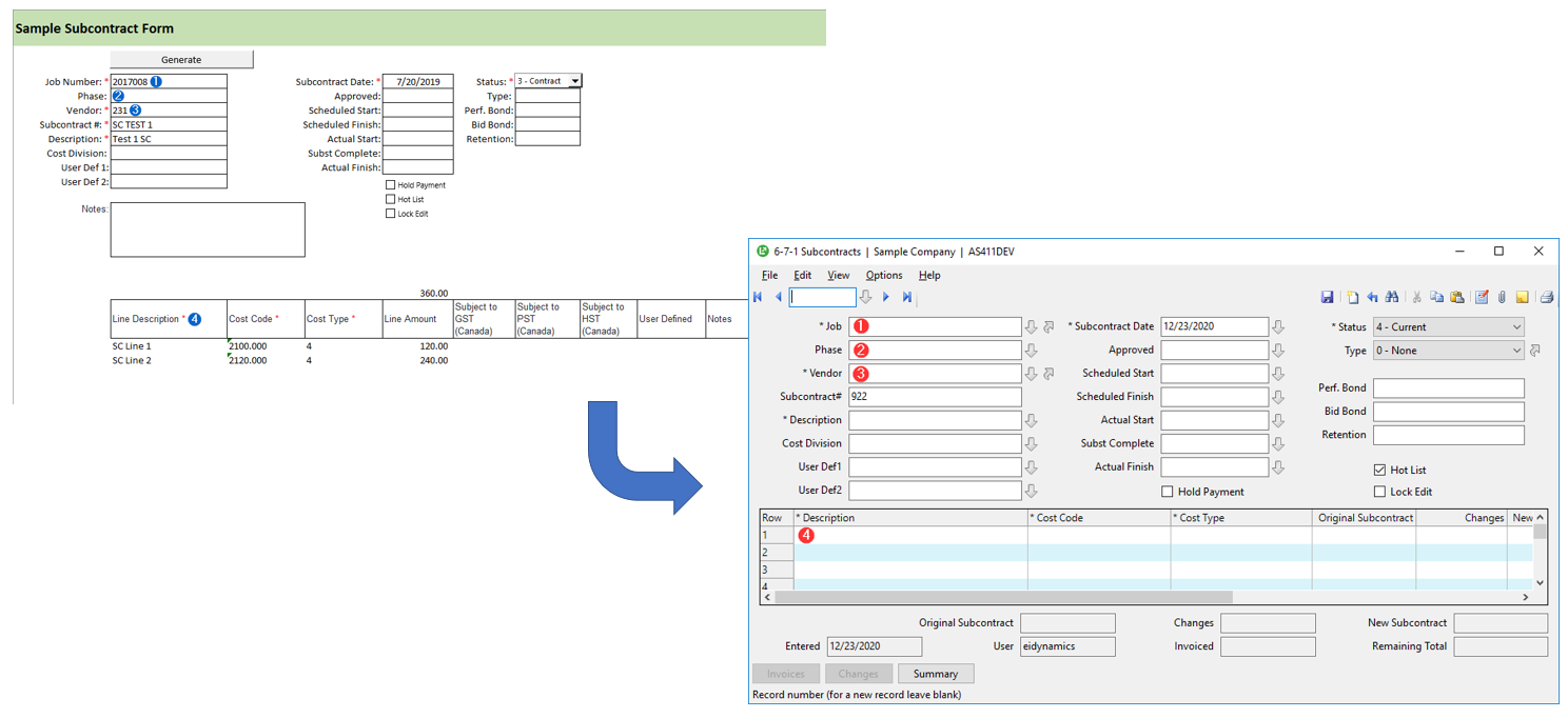 Are you tired of manually keying in Subcontracts one by one into Sage 100 Contractor? Would you rather download your subcontracts, fill in the blanks in Excel and import the details directly into Sage 100 Contractor? The following integration template allows you to do just that. It mimics every feature and function of the 6-7-1 Subcontracts data entry form.