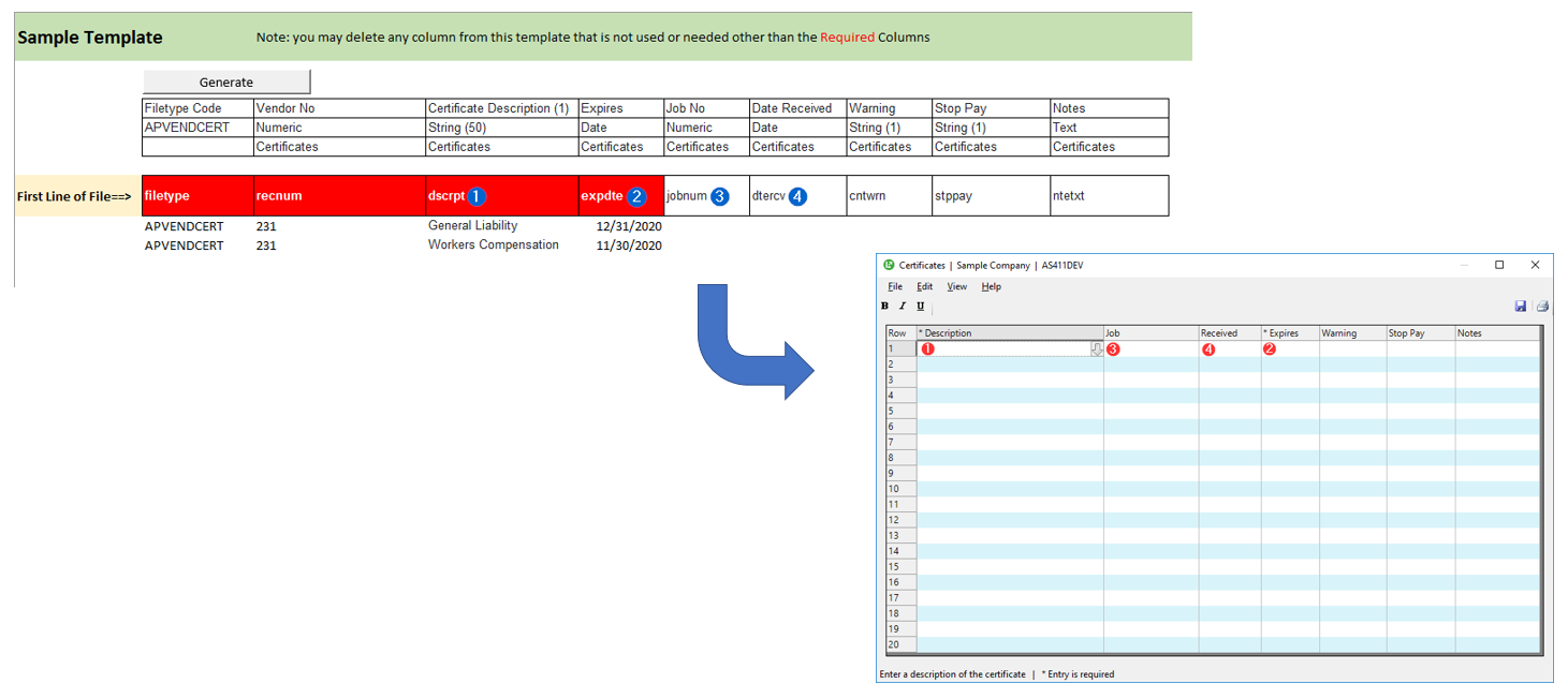 Are you tired of manually keying in Vendor Certificates one by one into Sage 100 Contractor? Would you rather download your vendor certificates, fill in the blanks in Excel and import the details directly into Sage 100 Contractor? The following integration template allows you to do just that. It mimics every feature and function of the 4-4 Vendor Certificates data entry form.