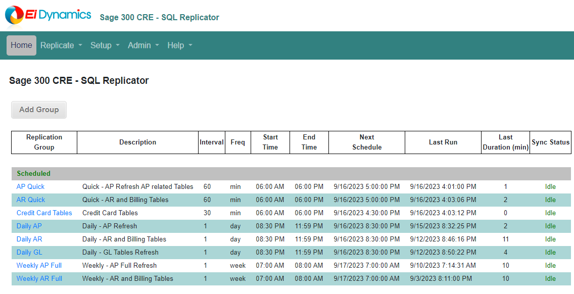 Data synchronization can be scheduled according to user defined table groups, allowing for a range of syncing schedules.